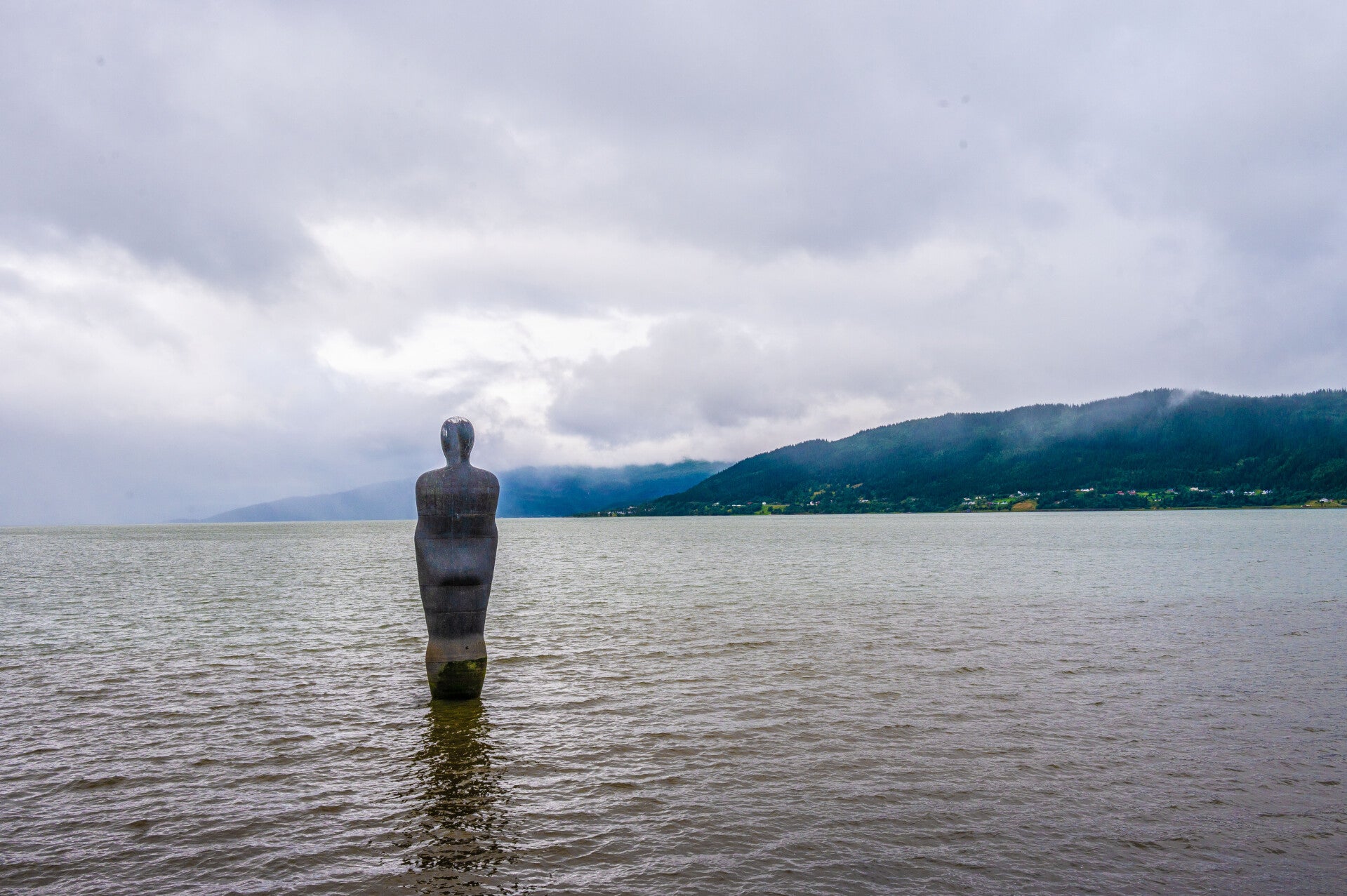 We have cross the arctic Circle! - Das steht auf dem Aufkleber, und um 13:59 Uhr waren wir bereit für das Beweisfoto. Doch beginnen wir von vorne: Unser Tag startete gegen 09:45 Uhr. Nach einer entspannten Morgenroutine war es bereits fast 11:00 Uhr, als wir loszogen. Die erste Etappe führte uns nach Moholmen, wo wir den "Mann im Wasser" bestaunten und ein reichliches Frühstück genossen. Danach ging es wie geplant weiter zum Polarkreis, den wir pünktlich um 13:50 Uhr erreichten – perfekt für unser Foto um 13:59 Uhr. Nach einer umfangreichen und schönen Merchandising-Tour durch den Laden fuhren wir noch etwa 20 Kilometer bis zu unserem Übernachtungsplatz. Dort gönnten wir uns zunächst eine Tasse köstlichen Kaffee – für Gabi gab es Tee – und ließen den Tag entspannt Revue passieren.
