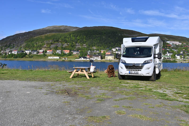 Nach unserer Ankunft in Hammerfest kümmern wir uns zunächst um die Hunde, richten das Auto aus und widmen uns dem heutigen Programmpunkt: Waschtag. Nach einem erholsamen Mittagsschlaf und einer belebenden Tasse Kaffee – für Gabi darf es Tee sein – machen wir einen Spaziergang mit den Hunden. Anschließend genießen wir unser Abendbrot, während Waschmaschine und Trockner uns eindrucksvoll beweisen, dass sie ihren Job immer noch zuverlässig erledigen.